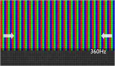 传统液晶驱动是从左到右单向进行,,,,在画面更新速度愈来越愈快的情况下,,位于驱动线路末端的右下角区域,,画素的闸极来不及在短时间内获得足够电压,,,无法显示出正确的颜色资讯。。。 |